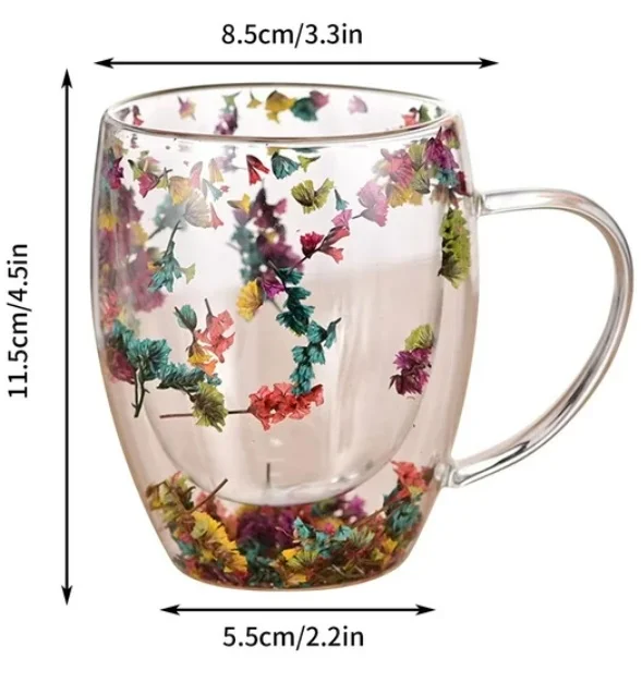 Genießen Sie Ihr Lieblingsgetränk in Gesellschaft von sanft getrockneten Blüten. Jeder Schluck ist ein Kuss der Natur. 🌸 Jede Tasse ist einzigartig und stellt ein wunderschönes Stück Natur dar, eingefangen im Glas. 😍